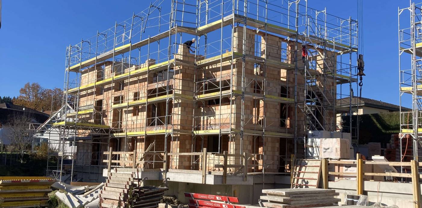 Die komplette Fassade der zwei Gebäude mit je drei Stockwerken ist mit gedämmtem Einsteinmauerwerk ohne Aussendämmung ausgeführt worden.