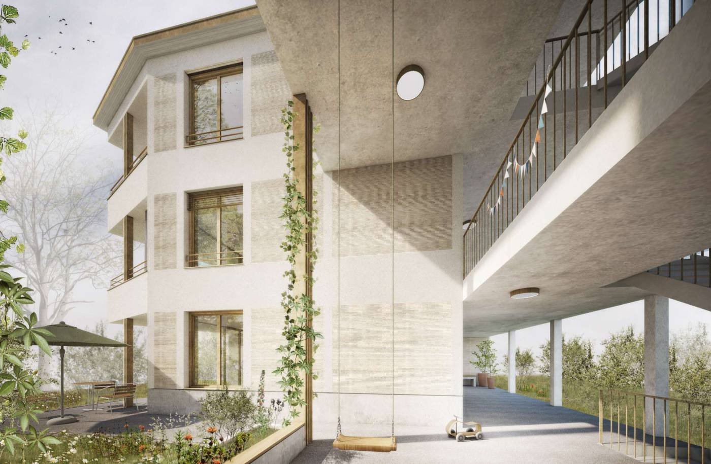 MGH steht für MehrGenerationenHaus. Die Tragstruktur vom Gebäude wurde in Massivbauweise ausgeführt, wobei an den Fassadenwänden ausschliesslich ein Einsteinmauerwerk zur Anwendung kam. Die zwei Volumen des Baukörpers werden mit einer verbindenden Stahlbetondecke elegant miteinander verbunden.