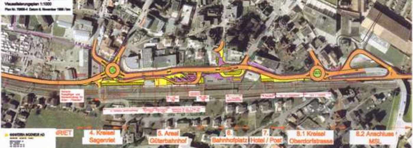 Kernentlastung Lachen, Variantenstudien, Machbarkeitsstudie, Verhandlungen mit SBB und Grundeigentümern , Öffentlichkeitsarbeit, Vorprojekt unkl. Kostenvoranschlag für Volksabstimmung