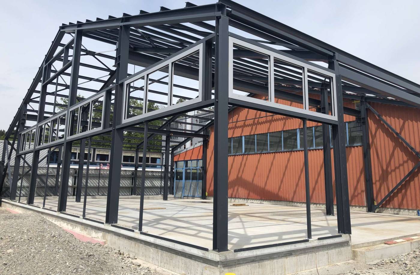 Westlich an den Bestand angrenzend wurde die Werkhalle um rund 3000 Kubikmeter erweitert. Zuvor mussten Bauten rückgebaut und das Planum erstellt werden. Die Erweiterung wurde während des laufenden Betriebs erstellt. Am Tag X wurden die beiden Werkhallen mit einander verbunden und die durchlaufenden Kranbahnen zusammengeführt. Dank einer minutiösen Planung konnte der Betriebsunterbruch auf ein Minimum reduziert werden und der Maschinenumzug planmässig erfolgen.