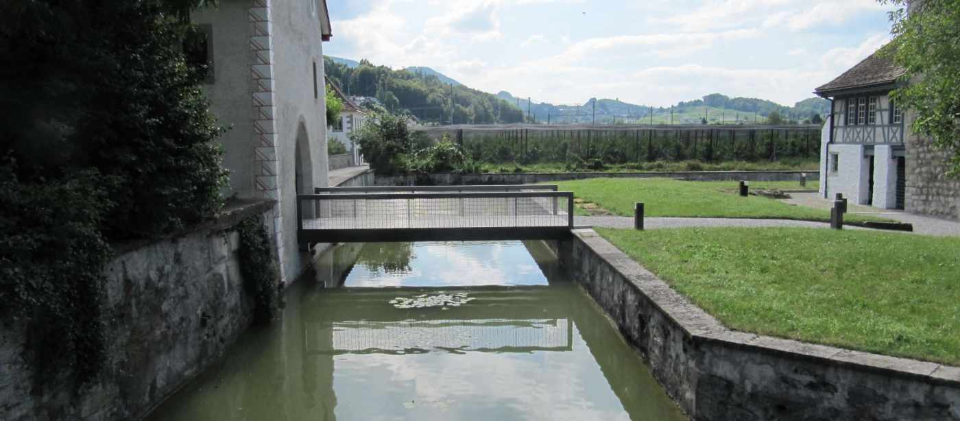 Ersatz der bestehenden Holzbrücke durch eine Stahlkonstruktion. Infolge der speziellen historischen Umgebung hat die Bauherrschaft einen Brückenbelag mit Sandsteinplatten gewählt, welcher spezielle Anforderungen an Planung und Realisierung gestellt hat.