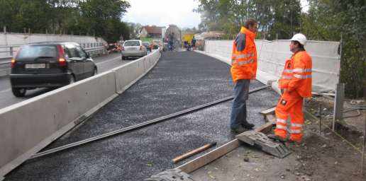 Vollständiger Neubau der Abdichtung (PBD Abdichtung inkl. Gussasphalt) inkl. Fugen und Fahrbahnübergängen sowie Ertüchtigung der Brücke. Betonschadstellen sondieren und nach erfolgter Behandlung wieder reprofilieren. Neubau der Randborde und Erstellung von Leitplanken. Externe Vorspannung in Brückenlängsrichtung mittels 2er im Hohlkasten angeordneter Vorspannkabel. Schubverstärkung der Längsträger mittels vorgespannter Zugstangen. Biegeverstärkung der Fahrbahnplatte mittels Überbeton und Stahllamellen.