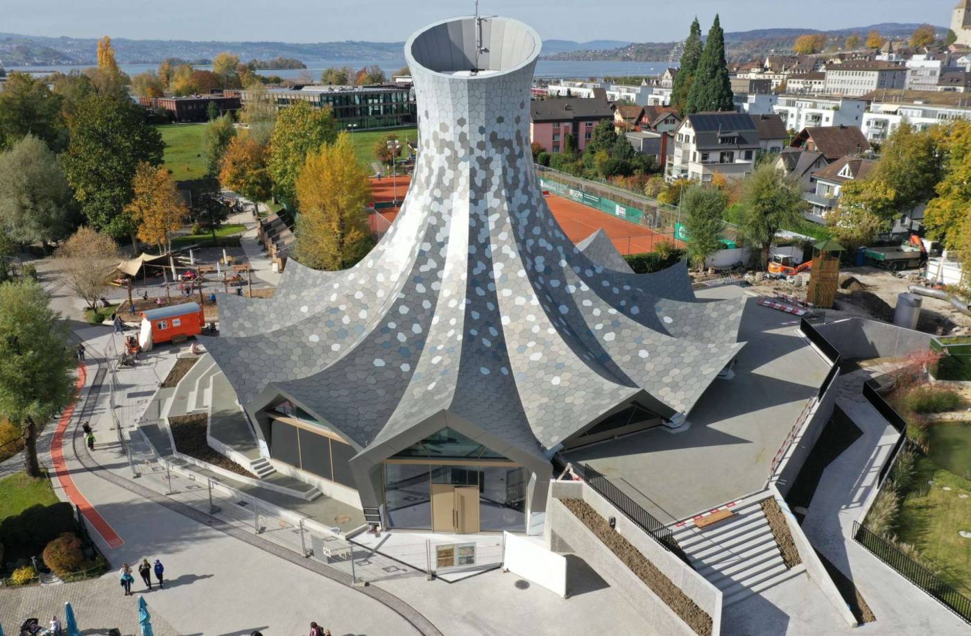 Das rund 25m hohe Gebäude steht im Herzen des zoologischen Gartens der Gebrüder Knie, in Rapperswil.