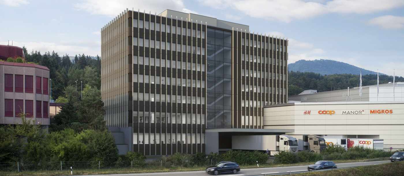 Das Bürogebäude der ehemaligen Verwaltung von Vögele wurde rückgebaut und mit einer dreigeschossigen Tiefgarage, zwei weiteren Untergeschossen und 6 Obergeschossen wieder neu aufgebaut.