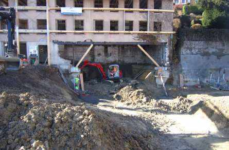 Neubau: Projekt und Baukontrolle Tragstruktur in Massivbauweise sowie Baugrube mit Sicherungen und Unterfangungen bestehender Bauwerke