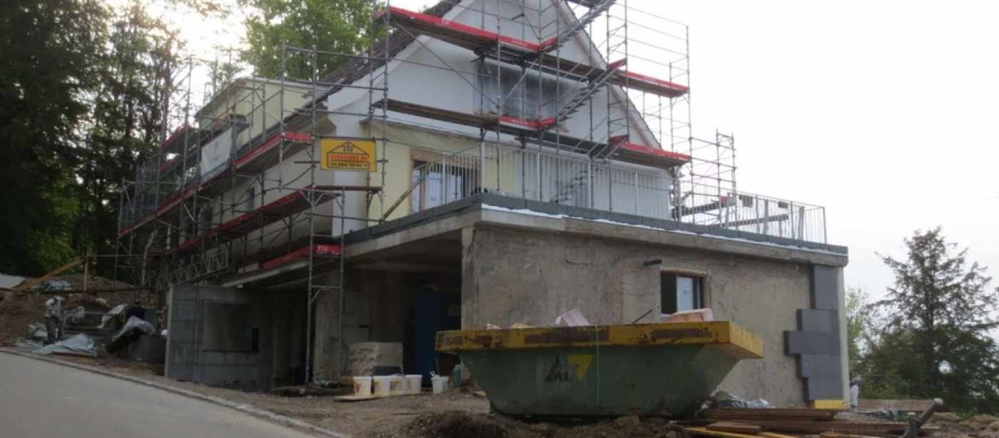 Umbau bestehendes Gebäude, Überprüfung der bestehenden Tragstruktur, Abfangung von Hurdisdecken, Unterfangen und Aushöhlen des Untergeschosses, Einbau der neuen Tragwände, teilweise als Überzüge und Wandscheiben, Verstärkung des Dachstuhles, neue Umgebungsstützmauern, neuer Balkon in Stahlbau.