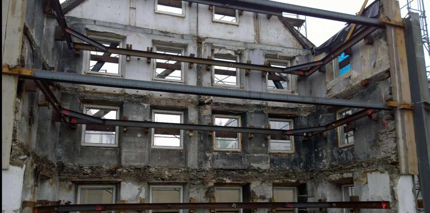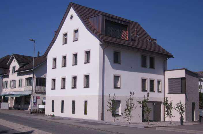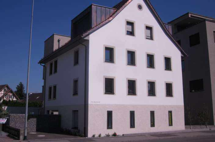 Das Wohnhaus an der St. Gallerstrasse 45/47 in Jona wurde total saniert. Die strassenseitige Fassade durfte dabei nicht abgebrochen werden und musste erhalten bleiben. Dafür waren umfangreiche Sicherungsmassnahmen notwendig.