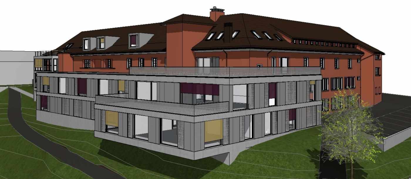 Das Wohnzentrum Fuhr dient seit Jahrzehnten der Betreuung von alten Menschen. Zur Modernisierung und Erweiterung wurde ein Anbau mit Küche Gemeinschaftssaal und Zimmern in Sichtbeton erstellt. Dieser weist einen 6m auskragenden Bereich auf. Aufgrund der Geologie musste der Anbau im abfallenden Fels mit Mikropfählen fundiert werden. Zuerst waren jedoch Schüttungen nötig, um die Arbeiten überhaupt ausführen zu können. Der Umbau des 1927 erstellten Hauses beinhaltete diverse Durchbrüche mit Abfangträgern, Klebebewehrungen sowie Verstärkungen des Daches.