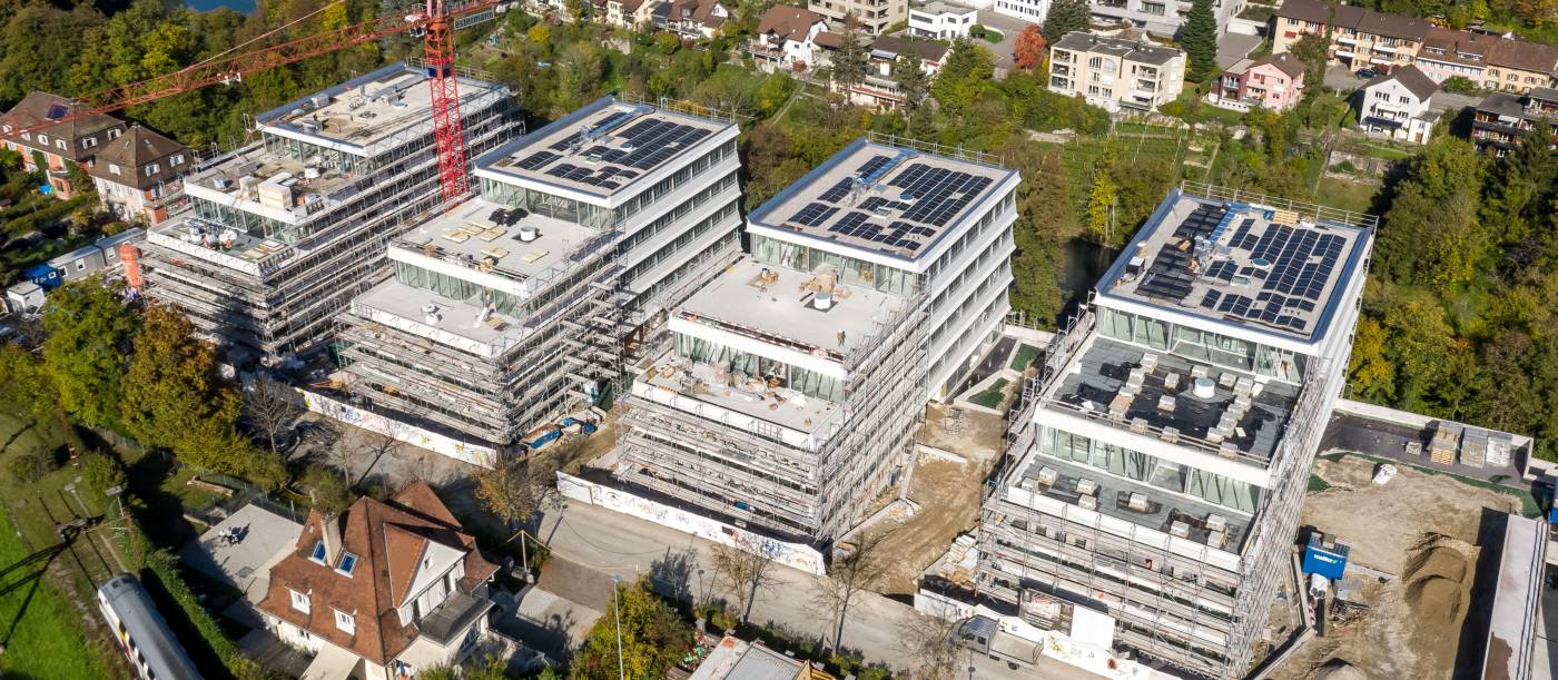 Das Projekt umfasst den Umbau von vier Bürogebäuden der 1960er-Jahre (ABB) zu Eigentumswohnungen. Wegen der Grundwasserschutzzone S2 war ein Neubau nicht möglich. Die filigranen Rippendecken (5?6 cm) wurden durch neue Betondecken (Spannweiten bis 8 m) ersetzt, die auf verstärkten Stützen lagern.