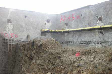 Baugrube: Die Baugrubensicherung erfolgte grösstenteils mit einer Spritzbetonnagelwand.