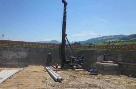 Zentrum Breitenhof, 8852 Altendorf, Projekt und Baukontrolle Tragstruktur in Massivbauweise, Projekt und Bauleitung Baugrubensicherung mit verankerter Rühlwand, Projekt und Bauleitung Pfählungsarbeiten