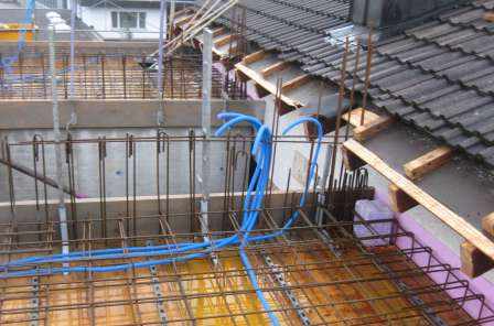 Das bestehende wie auch das neue Gebäude sind auf Pfählen fundiert. Dazu wurden 23 Injektionsrammpfähle erstellt, welche bis zu 30m lang sind.