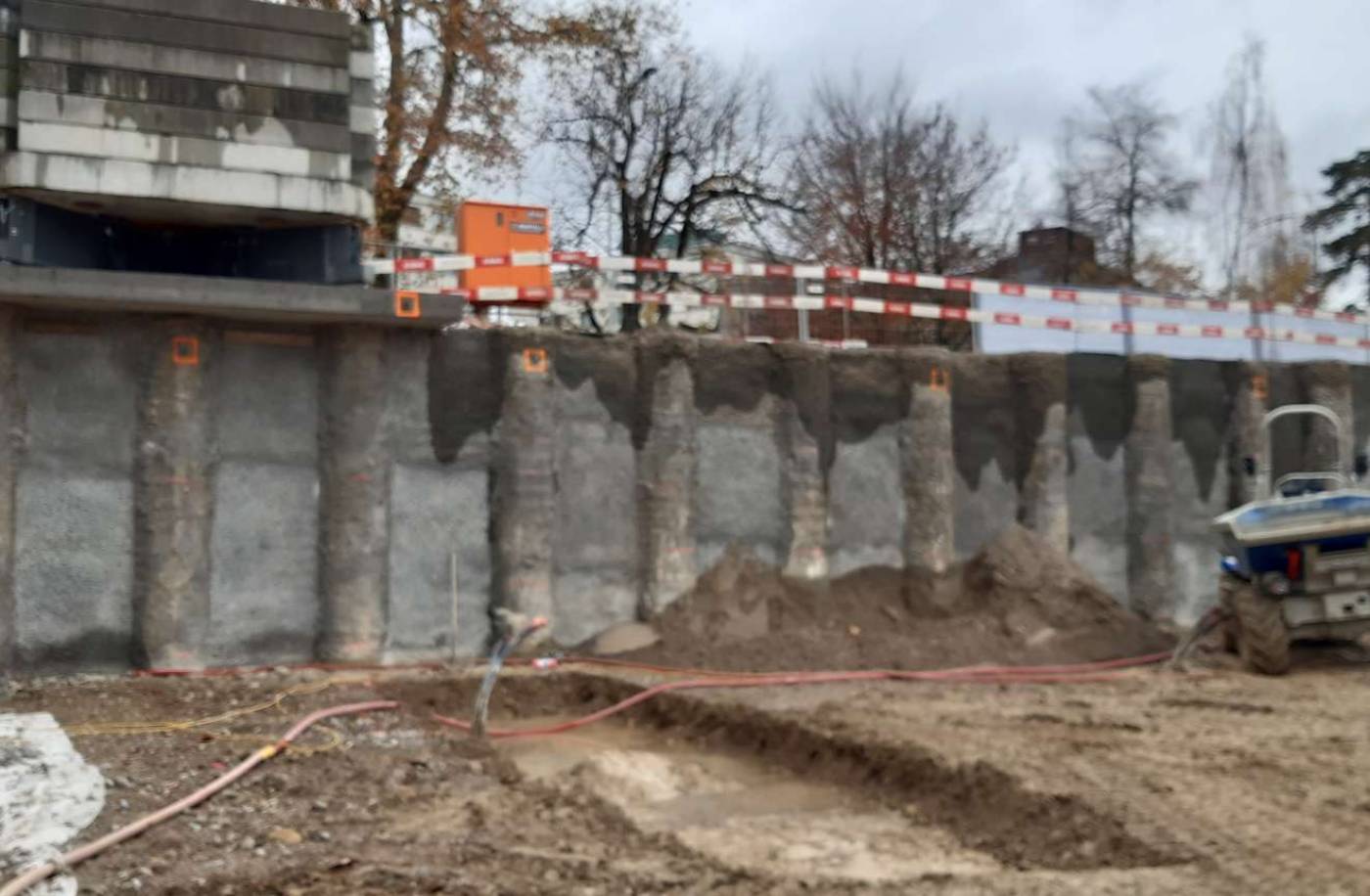 Die Untergeschosse kommen liegen komplett im Grundwasser. Die Baugrube liegt direkt an stark befahrenen Bahnhofstrasse von Wetzikon.