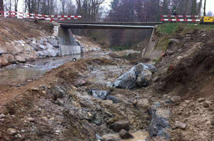 Die Realisierung erfolgte in enger Begleitung der entsprechenden Fachpersonen und mit baulichen Vorkehrungen, damit die Ufermauern und Sohlrampen erstellt werden konnten.