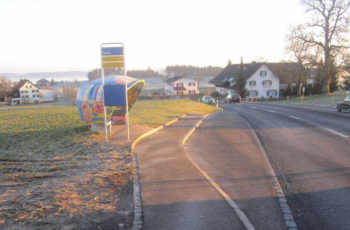 Im Zuge der anstehenden Belagserneuerungen der Kantonsstrasse werden im betroffenen Abschnitt die angrenzenden Bushaltestellen instand gestellt und behindertengerecht ausgebildet. Der behindertengerechte Ausbau der insgesamt drei Bushaltestellen (Busbuchten) erfolgt nach den Normalien und Vorgaben vom Kanton Zürich. Dabei erfordern die örtlichen speziellen Randbedingungen innovative Lösungsansätze.